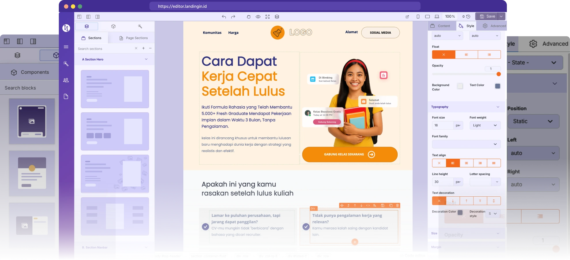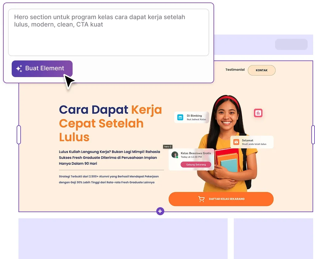 Fokus Konversi (ada CTA dan ruang testimoni)